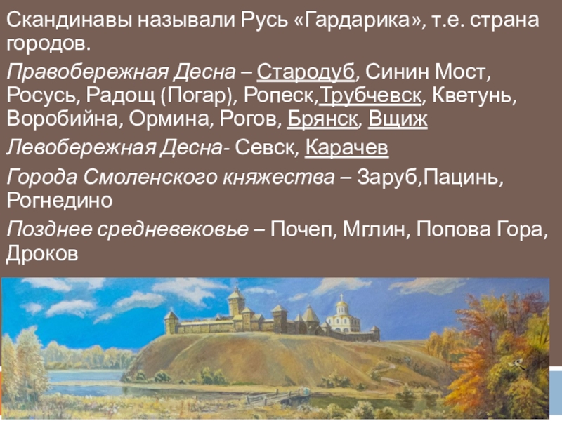 Скандинавы называли Русь «Гардарика», т.е. страна городов.
