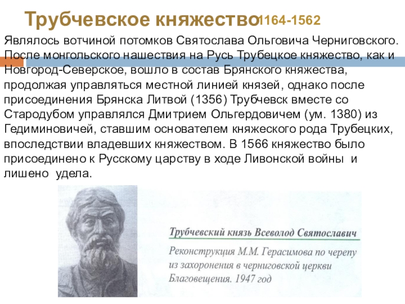 Являлось вотчиной потомков Святослава Ольговича Черниговского.
