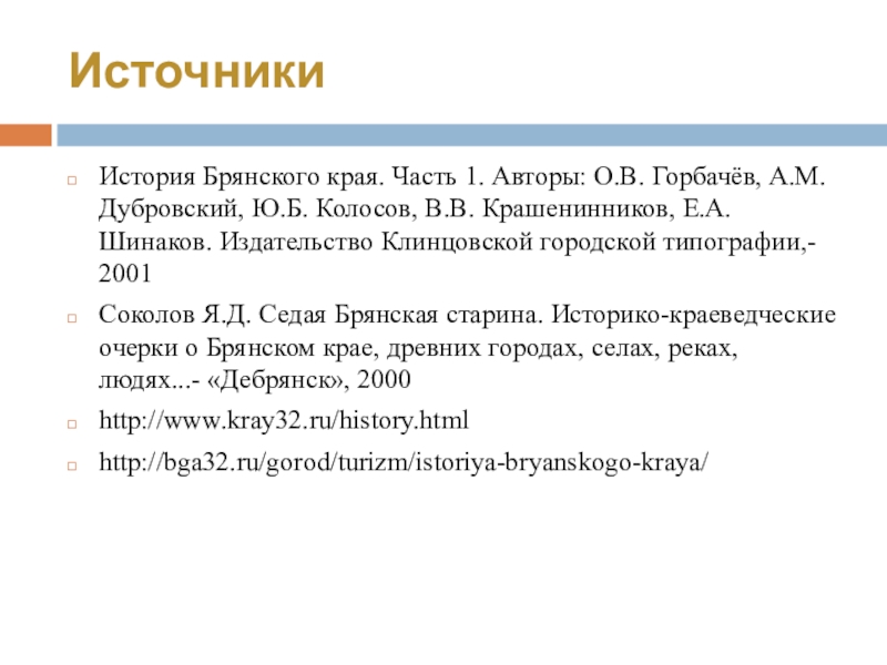 http://bga32.ru/gorod/turizm/istoriya-bryanskogo-kraya/