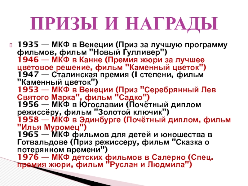 ПРИЗЫ И НАГРАДЫ