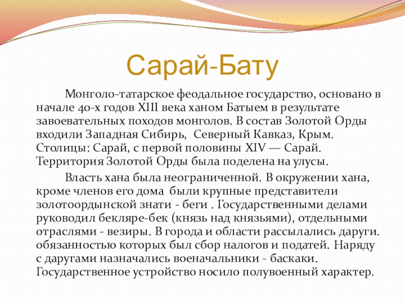 Монголо-татарское феодальное государство, основано в начале 40-х годов XIII века ханом