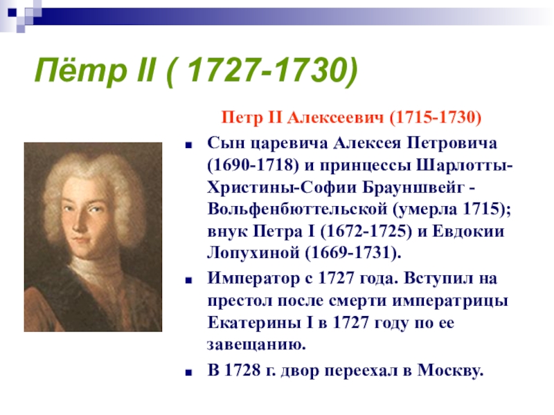 Не успев жениться, Петр II заболел и умер в 1730 году.