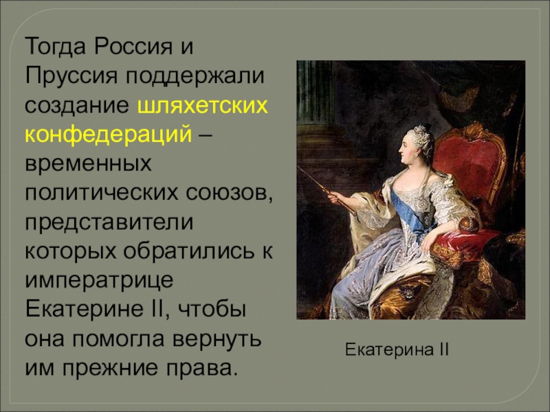 Пользуясь правом защиты иноверцев в Речи Посполитой, Россия и Пруссия выдвинули проект уравнения в правах диссидентов с католиками. Диссидентами называли шляхту некатолического вероисповедания. Однако сейм РП отказался выполнить это требование.