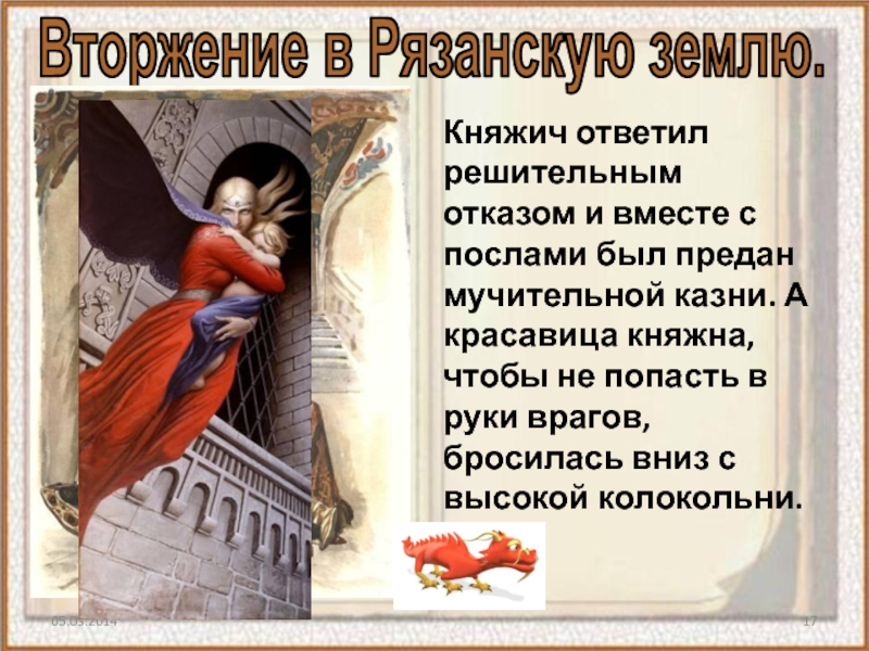 Рязанский князь с богатыми подарками отправил к Батыю своё посольство во главе с сыном Фёдором