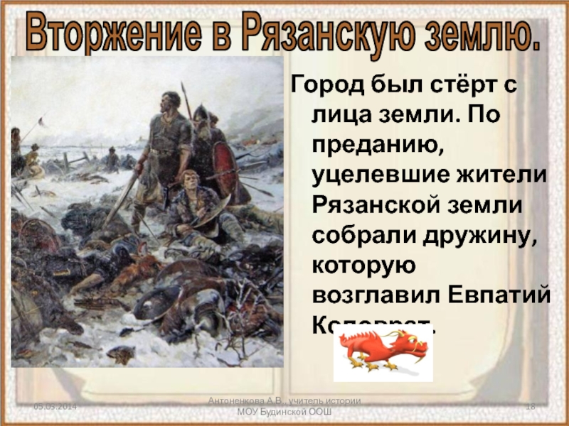 Затем монголы подошли к Москве. Горожане во главе с воеводой Филиппом Нянькой 5 дней мужественно сдерживали напор врага.
