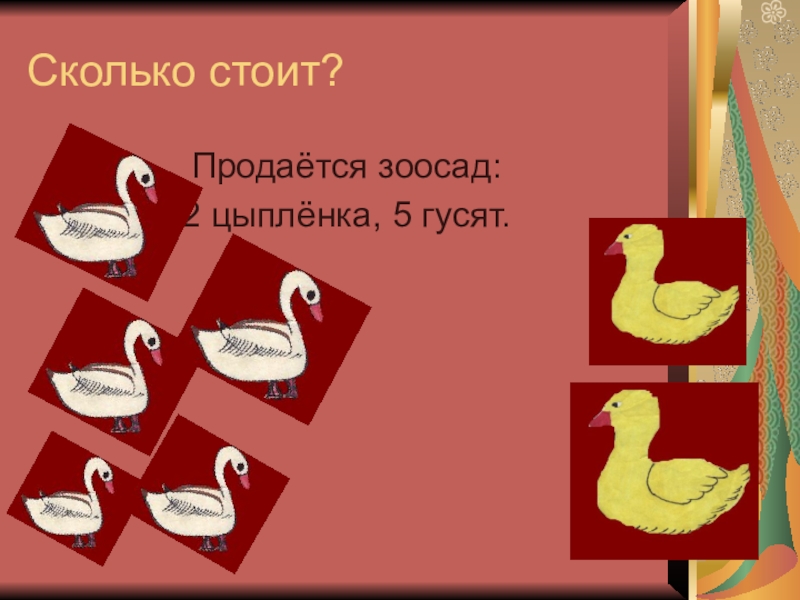 2 цыплёнка, 5 гусят.