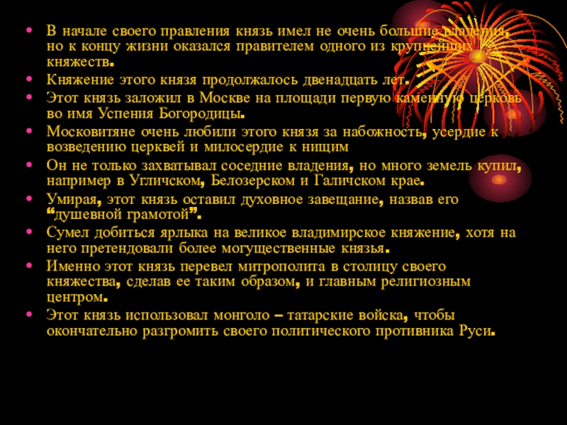 Этот князь заложил в Москве на площади первую каменную церковь во имя Успения Богородицы.