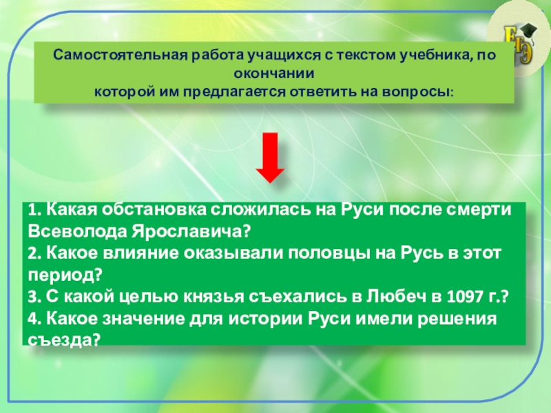 1. Какая обстановка сложилась на Руси после смерти Всеволода Ярославича?