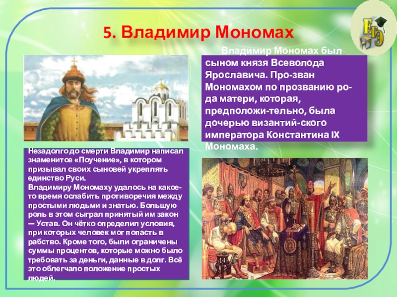 4. В каком году Владимир Мономах стал великим киевским князем?