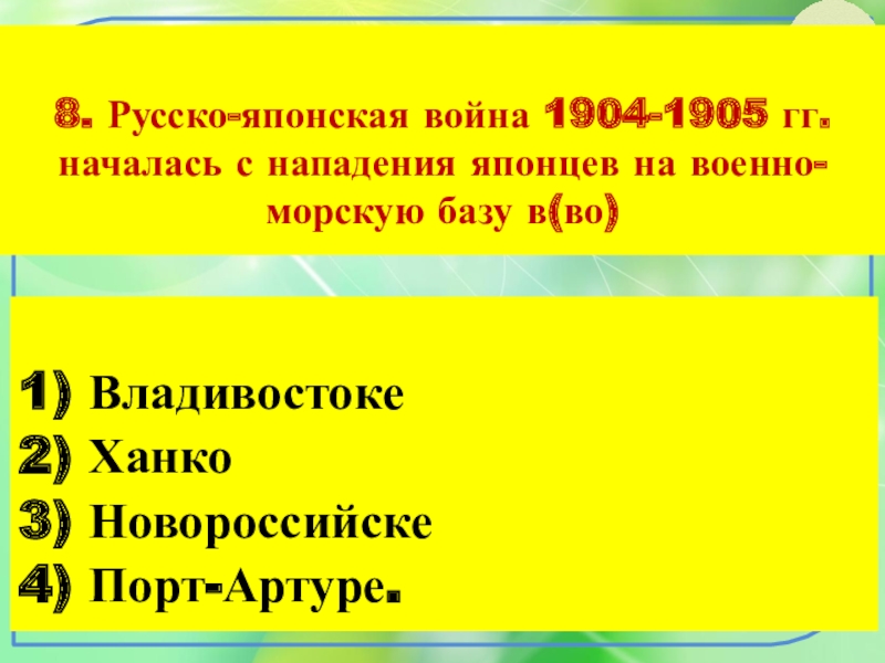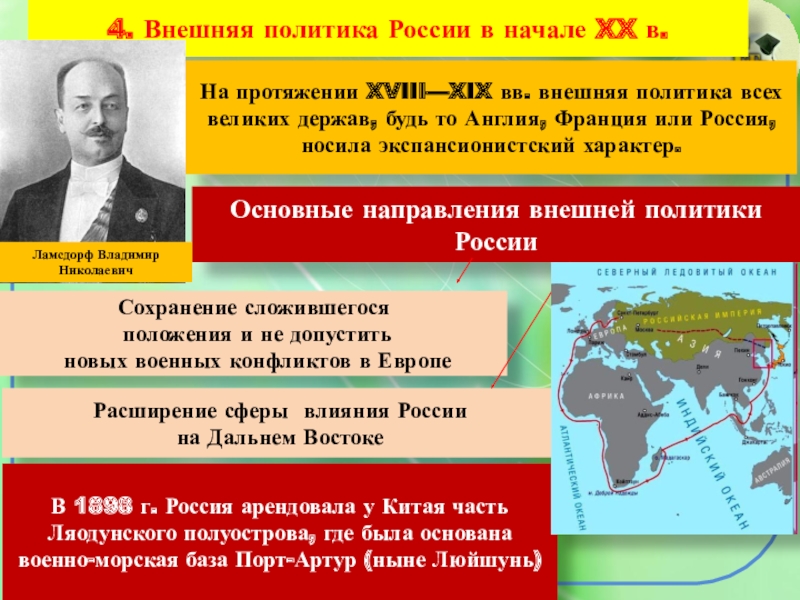 В 1898 г. Россия арендовала у Китая часть Ляодунского полуострова, где была основана военно-морская база Порт-Артур (ныне Люйшунь)
