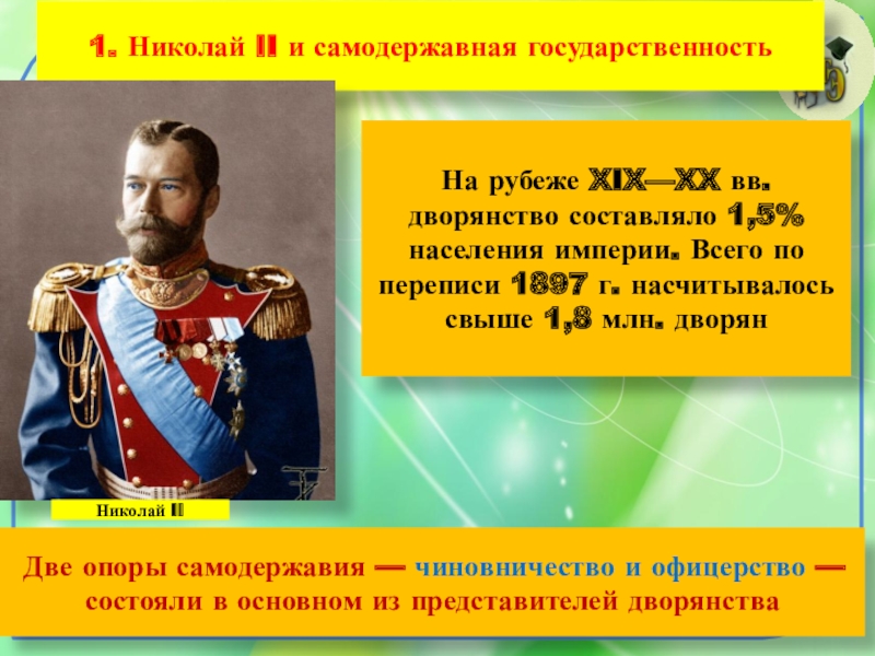 Две опоры самодержавия — чиновничество и офицерство — состояли в основном из представителей дворянства