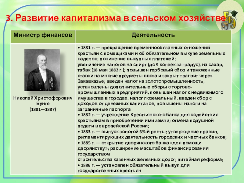 В пореформенном сельском хозяйстве все более явно просту-пал его товарный характер. Все явственнее проявлялась специа-лизация экономических районов по производству зерна, льна, сахарной свеклы, масличных культур, продукции животно-водства на продажу. Увеличилась продуктивность сельского хозяйства
