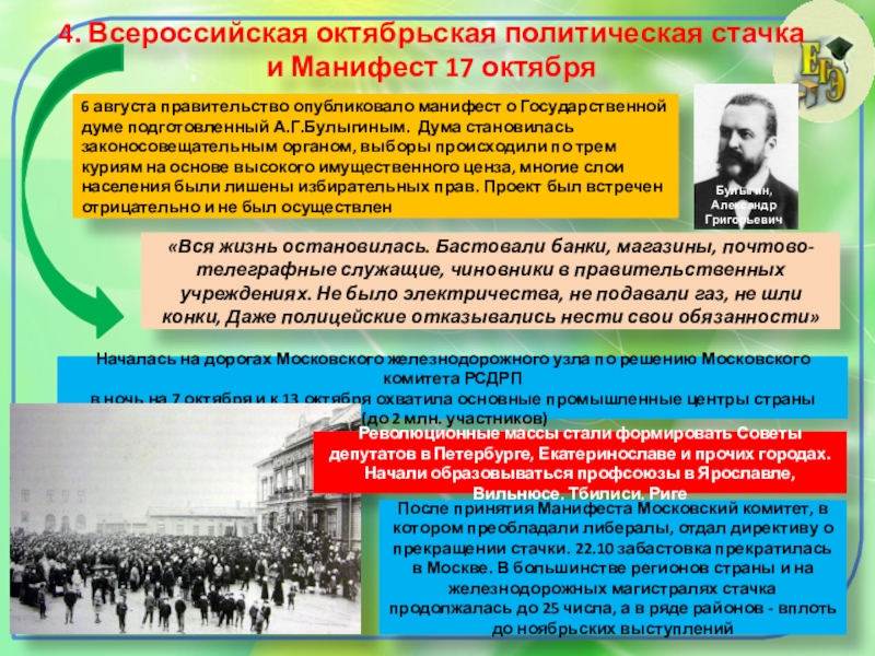 Манифест 17 октября 1905, содержание которого было прогрессивным для начала ХХ века, не изменил коренным образом ситуацию в стране