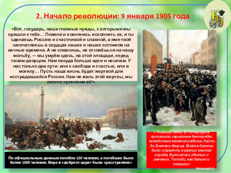 По официальным данным погибло 130 человек, а погибших было более 1000 человек. Вера в «доброго царя» была «расстреляна»