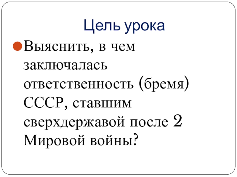 Выяснить, в чем заключалась ответственность (бремя) СССР, ставшим сверхдержавой после