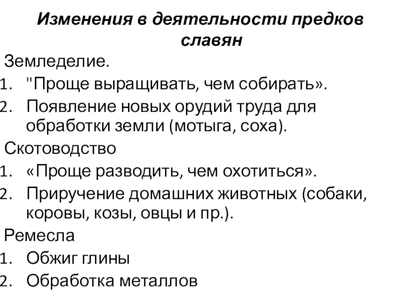 Изменения в деятельности предков славян