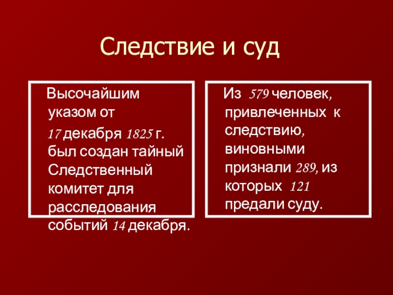17 декабря 1825 г. был создан тайный Следственный комитет для расследования событий 14 декабря.