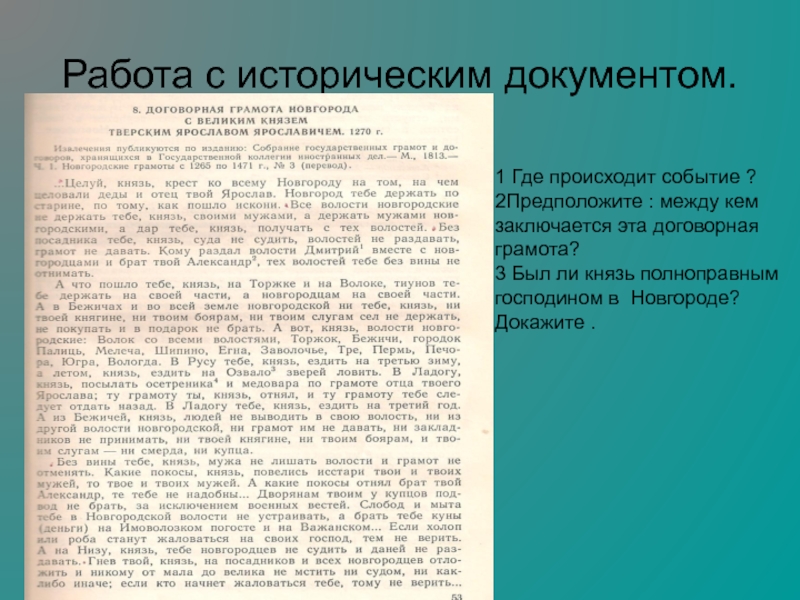 Слайд 11Работа с историческим документом.