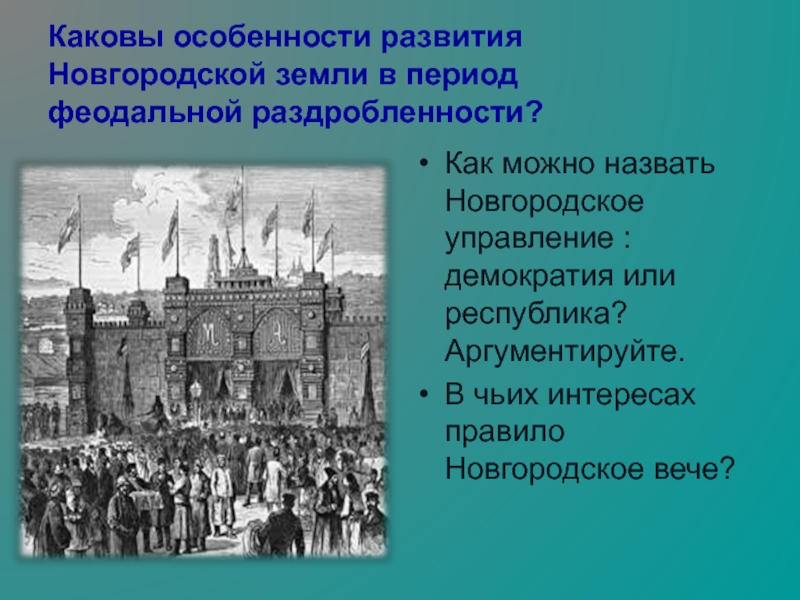 Слайд 12Каковы особенности развития Новгородской земли в период