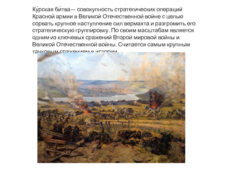 Слайд 2Ку́рская би́тва— совокупность стратегических операций Красной армии в Великой Отечественной войне