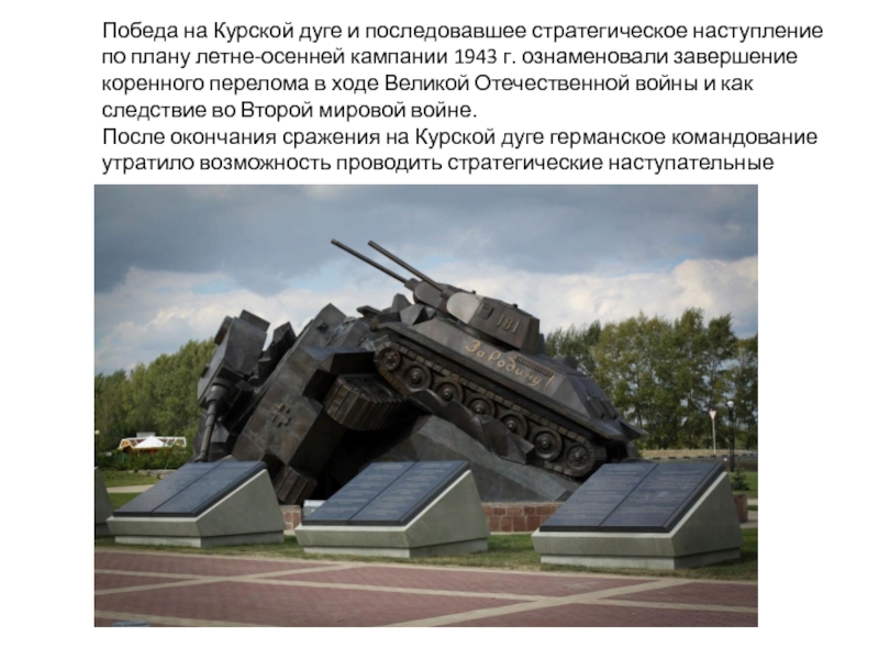 Слайд 22Победа на Курской дуге и последовавшее стратегическое наступление по плану летне-осенней