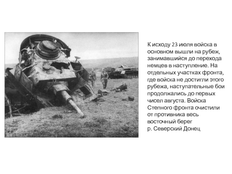 до перехода немцев в наступление. На отдельных участках фронта, где войска не достигли этого рубежа, наступательные бои продолжались до первых чисел августа. Войска Степного фронта очистили от противника весь восточный берег