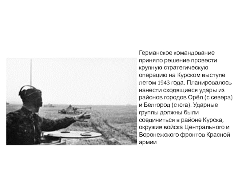 Слайд 9Германское командование приняло решение провести крупную стратегическую операцию на Курском выступе