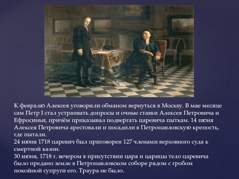 Старший сын Петра Великого от брака с Евдокией Лопухиной .