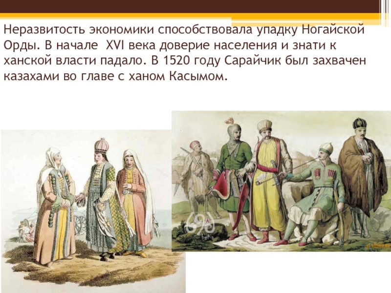 Слайд 41Неразвитость экономики способствовала упадку Ногайской Орды. В начале XVI века доверие
