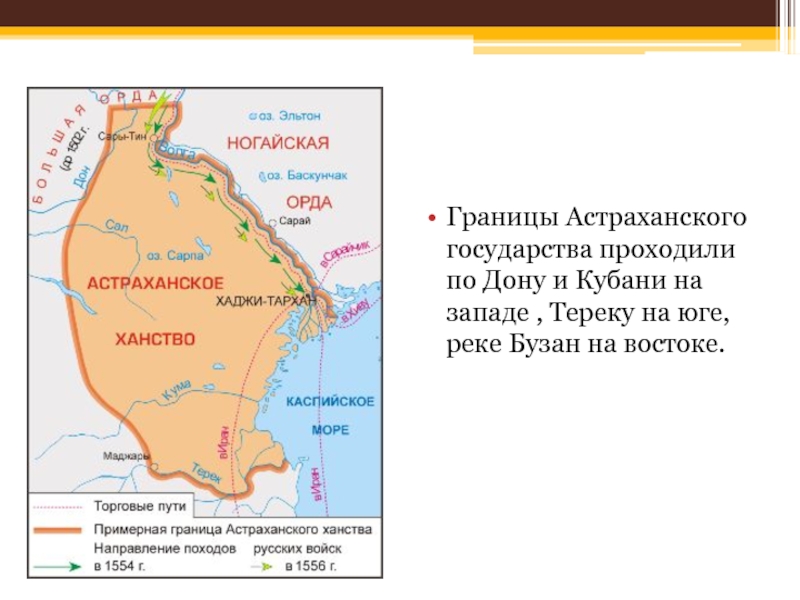Границы Астраханского государства проходили по Дону и Кубани на западе ,