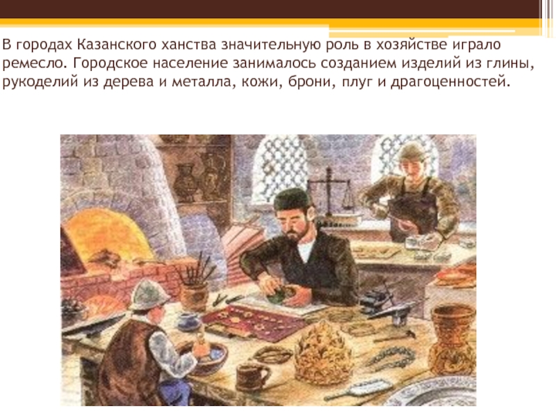 Слайд 15В городах Казанского ханства значительную роль в хозяйстве играло ремесло. Городское
