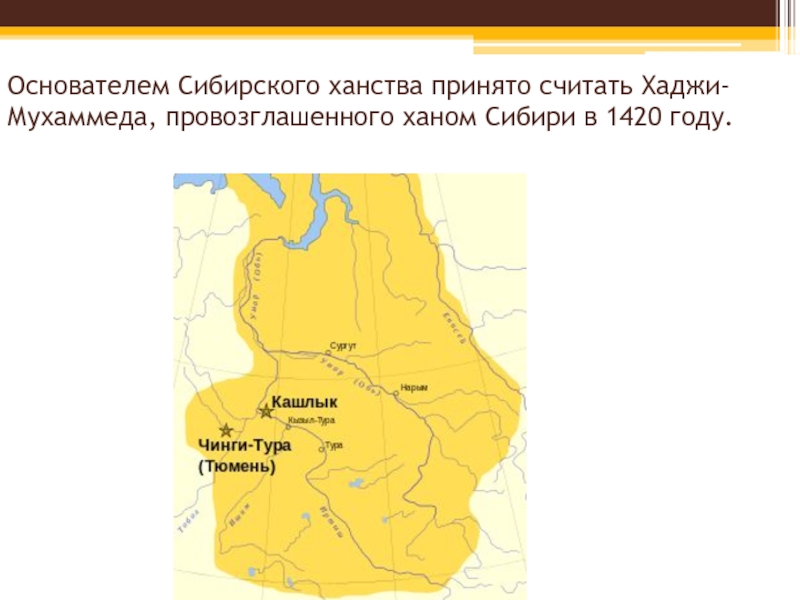 Слайд 42Основателем Сибирского ханства принято считать Хаджи-Мухаммеда, провозглашенного ханом Сибири в 1420