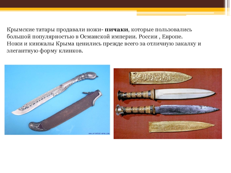 Слайд 32Крымские татары продавали ножи- пичаки, которые пользовались большой популярностью в Османской