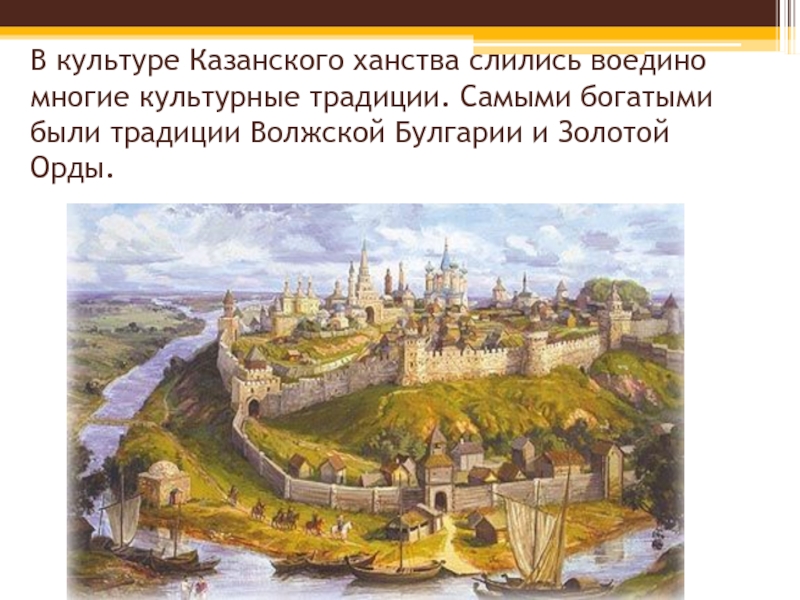 Слайд 18В культуре Казанского ханства слились воедино многие культурные традиции. Самыми богатыми