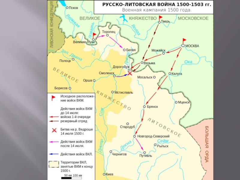 Слайд 32В итоге, по окончании войны, к Руси отошла 1/3 литовской территории