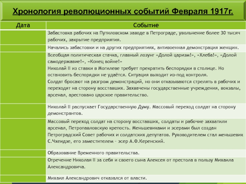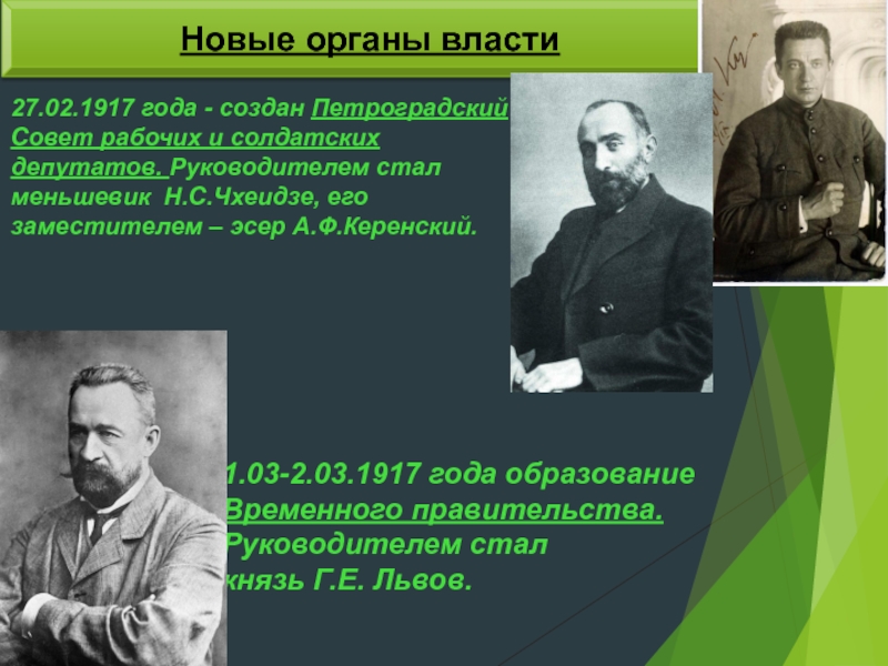 1.03-2.03.1917 года образование Временного правительства. Руководителем стал князь Г.Е. Львов.
