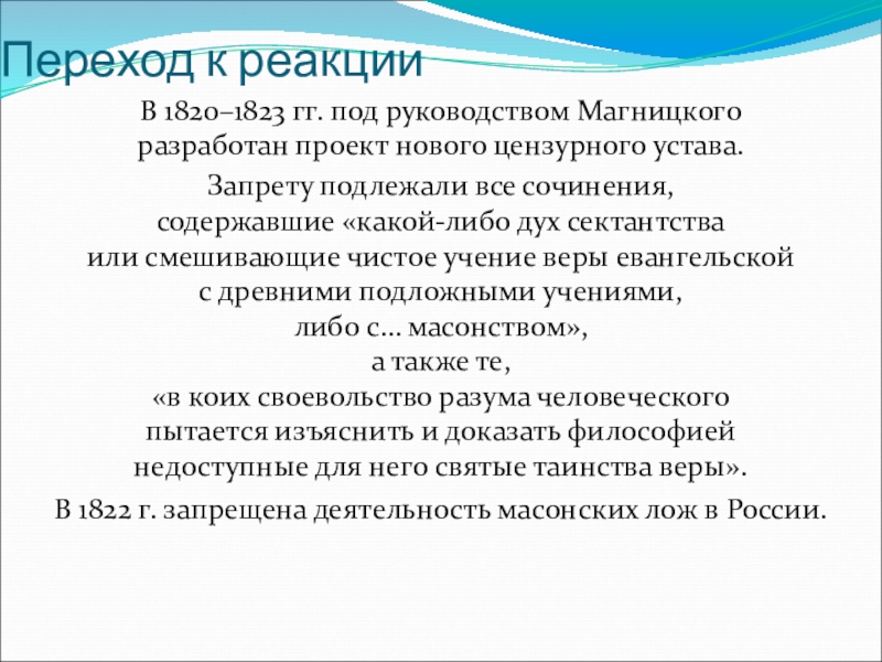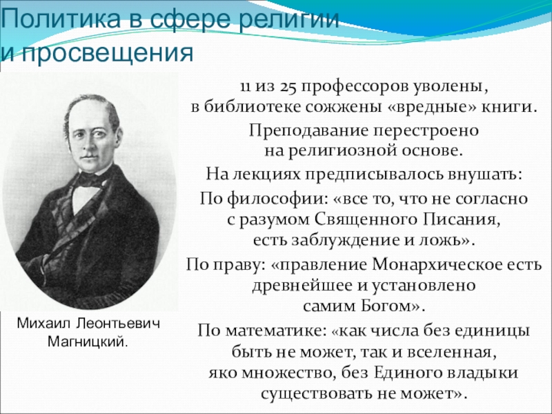 Готовилось распространение созданных Магницким инструкций на все российские университеты.