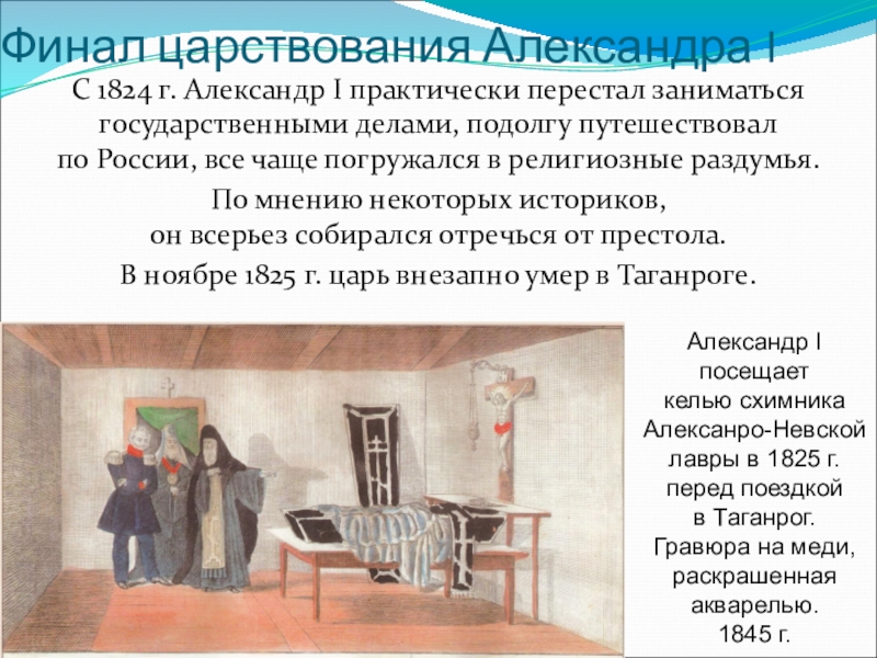 келью схимника Алексанро-Невской лавры в 1825 г. перед поездкой