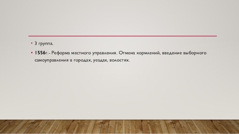 1556г.- Реформа местного управления. Отмена кормлений, введение выборного самоуправления в