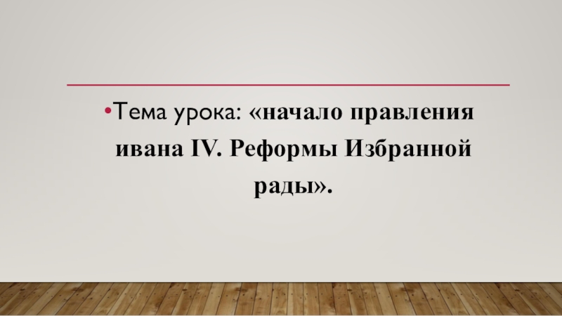 Слайд 3Тема урока: «начало правления ивана IV. Реформы Избранной рады».