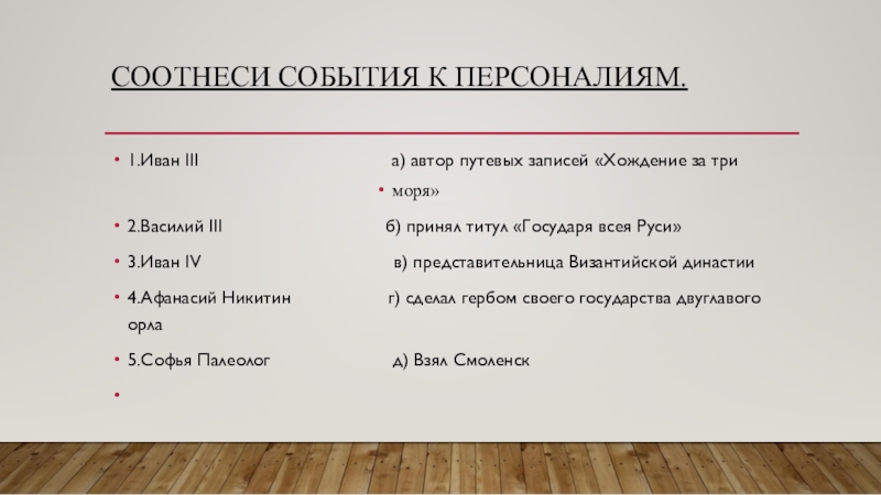 Слайд 2Соотнеси события к персоналиям.