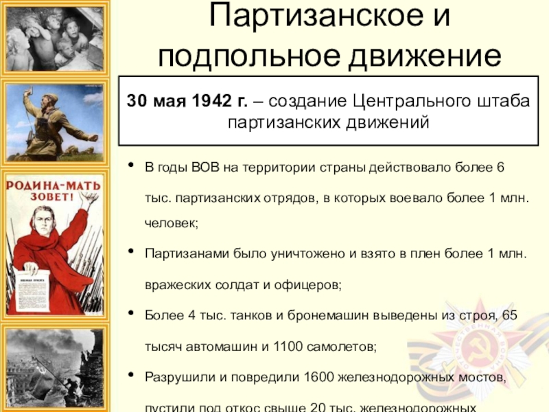 30 мая 1942 г. – создание Центрального штаба партизанских движений