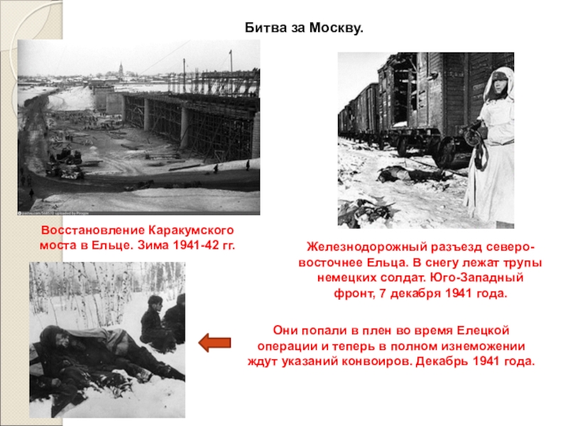 Они попали в плен во время Елецкой операции и теперь в полном изнеможении ждут указаний конвоиров. Декабрь 1941 года.