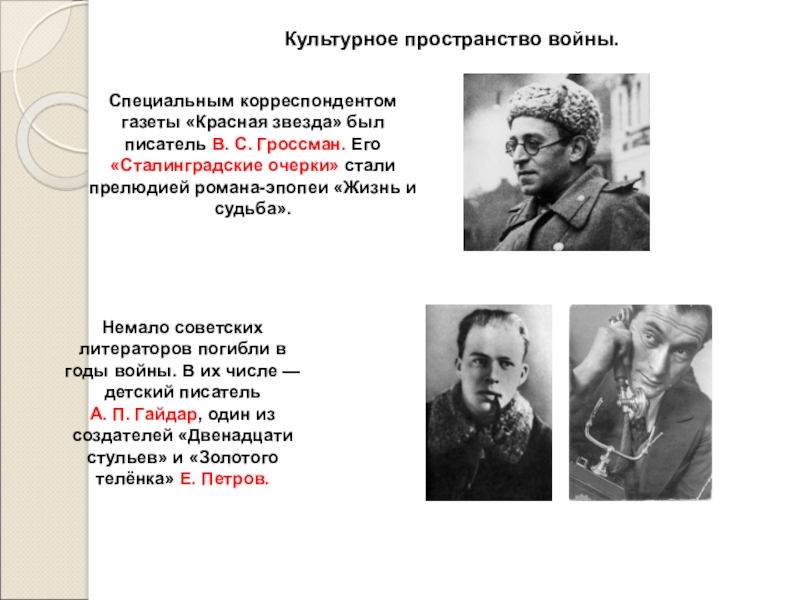А. П. Гайдар, один из создателей «Двенадцати стульев» и «Золотого телёнка» Е. Петров.