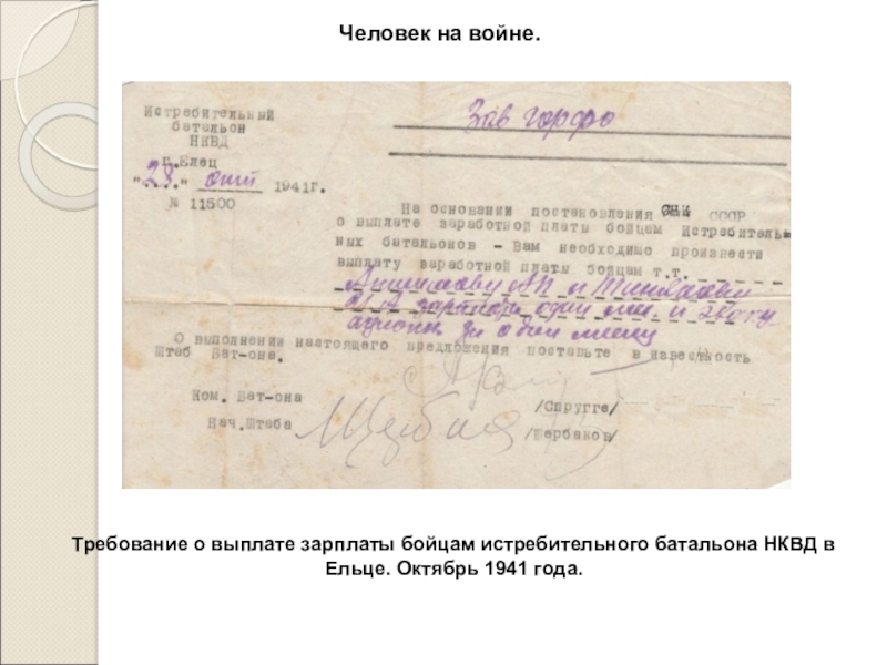 Требование о выплате зарплаты бойцам истребительного батальона НКВД в