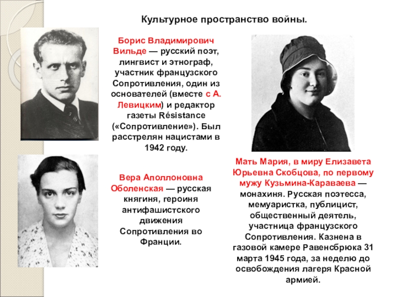 Вера Аполлоновна Оболенская — русская княгиня, героиня антифашистского движения Сопротивления во Франции.
