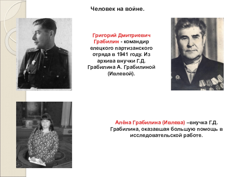 Алёна Грабилина (Ивлева) –внучка Г.Д. Грабилина, оказавшая большую помощь в исследовательской работе.