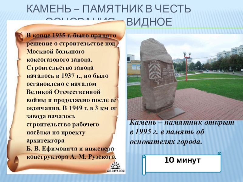 Камень – памятник открыт в 1995 г. в память об основателях города.