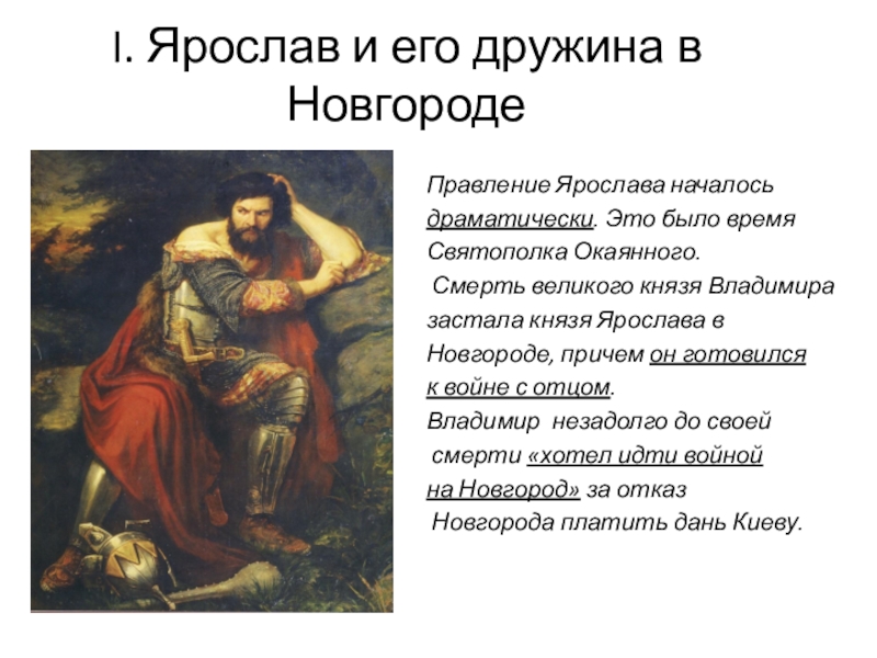 Слайд 3I. Ярослав и его дружина в Новгороде