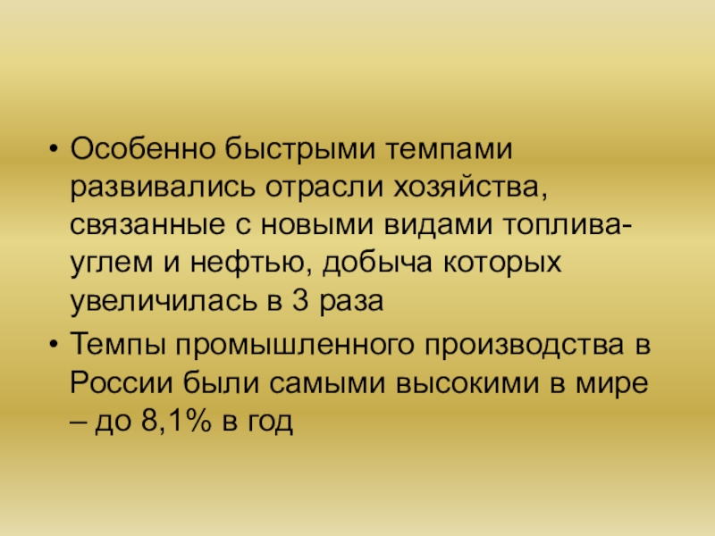 Особенно быстрыми темпами развивались отрасли хозяйства, связанные с новыми видами топлива-углем